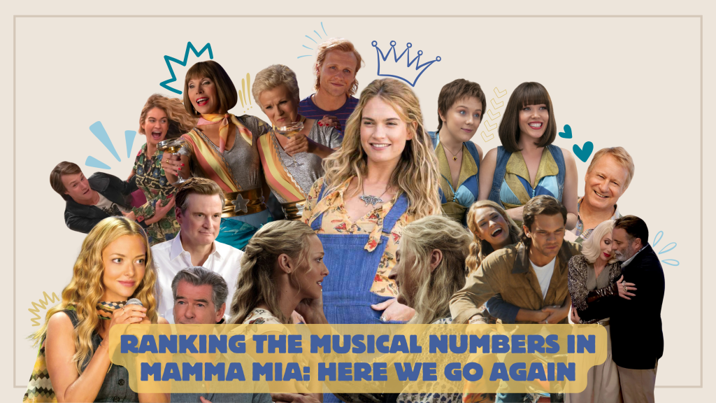 During my recent rewatch, I was on a plane watching the movie on my iPad. Several times throughout I found myself smiling like an idiot at the movie, mostly during the many musical numbers. And since I am me, I started to rank them in my head. Now that I am back on land and have access to my keyboard, I jumped on the opportunity to write a definitive – and opinionated – list of the 15 musical numbers performed by the main cast in Mamma Mia: Here We Go Again!